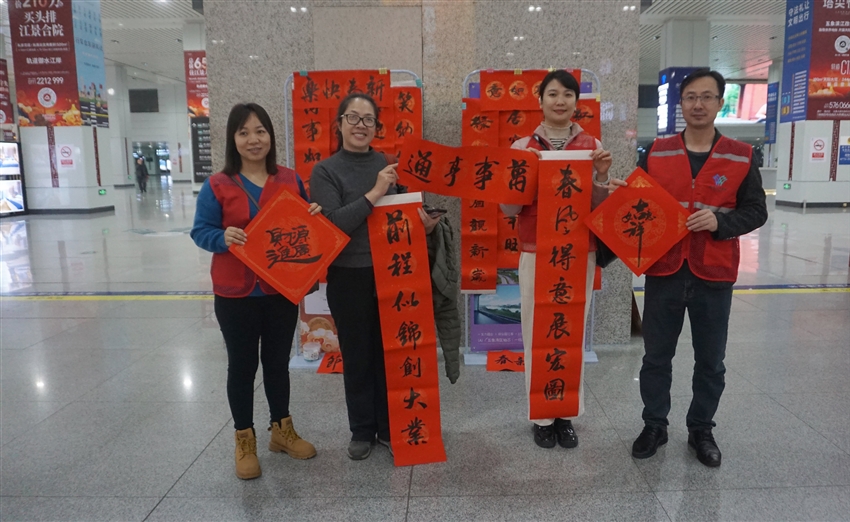 1月23日上午,軌道地產(chǎn)建筑公司黨支部與南湖街道屯里社區(qū)黨總支攜手,在南寧火車東站南廣場開展一場別開生面的送春聯(lián)、贈福字活動。社區(qū)黨員與企業(yè)黨員志愿者積極參與,為奔波在春運途中的人們送去滿滿溫暖與新春祝福。